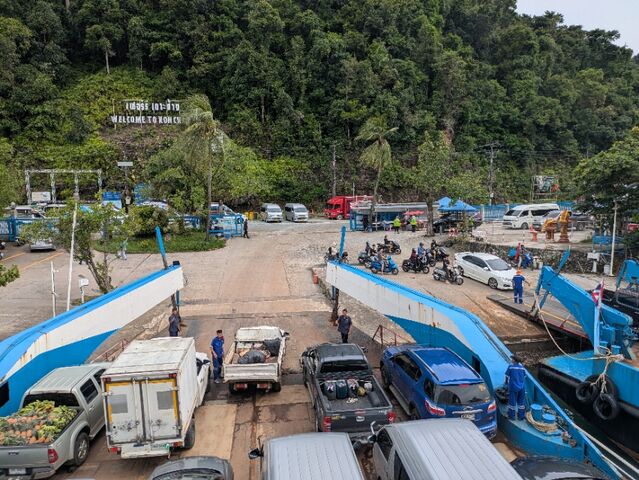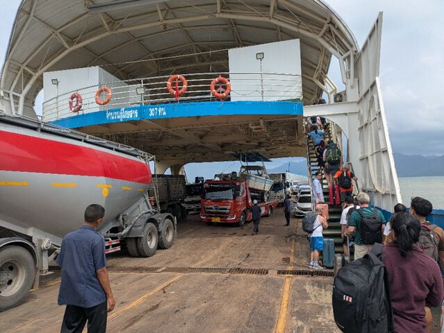 3.14:00 トラートのフェリー乗り場着 、以降、バスから荷物を下して自分で運ぶ