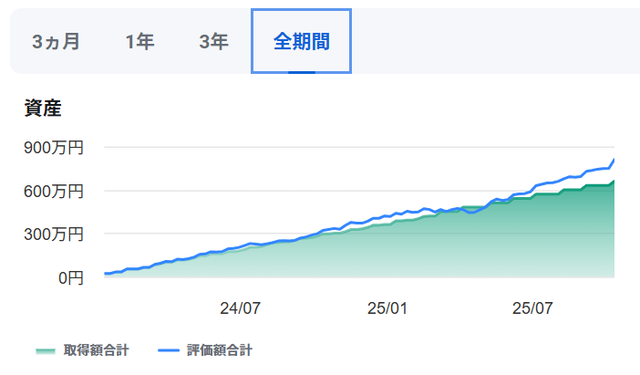 恒例の新NISAの積み立て状況の報告。毎月30万円を積み立てている新NISAの実績を挙げる。