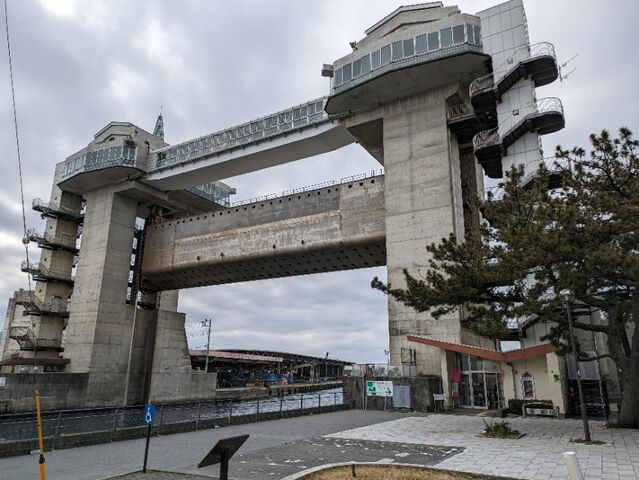沼津港大型展望水門、100円はらうとエレベーターで上へ。今日は天候が今一なのでパス。