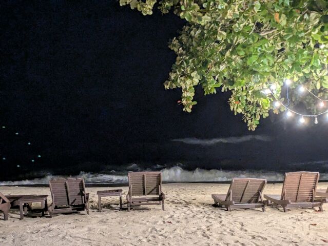 今日はホテル移動日。今日までのホテルは、ホワイトサンドビーチのバンガロータイプ。施設全体はゆったりしているけど、部屋が狭すぎた。15㎡。また、海に直接出られるけど、岩場だから行かないな。