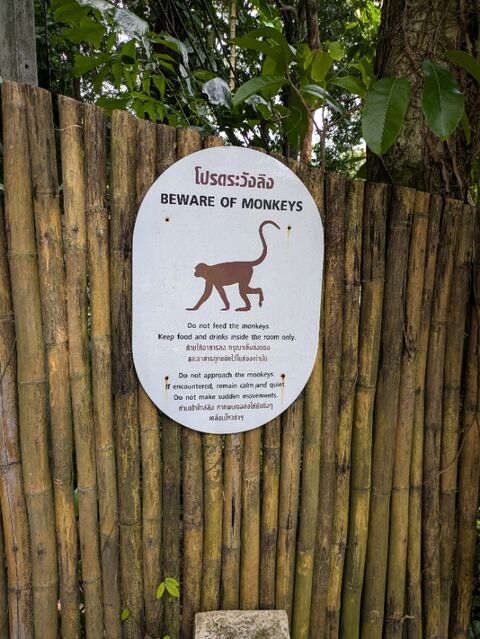 ホテルの敷地内には猿がいるらしい。バルコニーに洗濯物を干したら取られるかも。