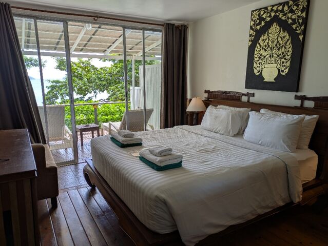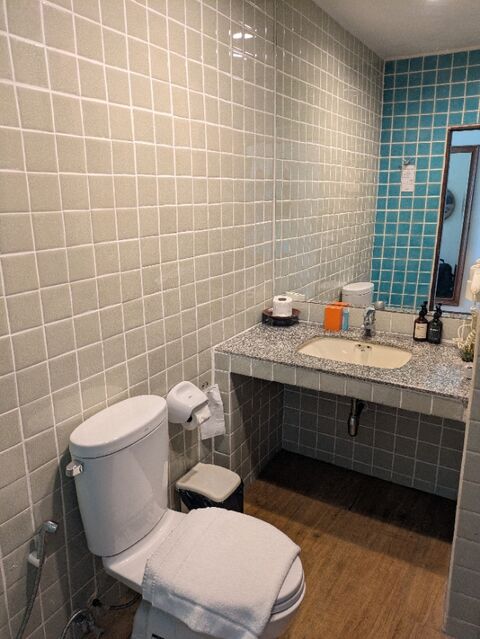 部屋、30㎡、オーシャンビュー、朝食付き、4,100円/泊、無料でアップグレードしてくれた。本当だったら5,800円/泊の部屋。