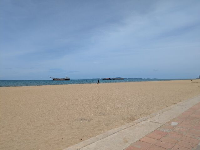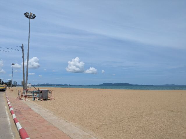 昨日の朝、ジョムティエンビーチの海岸道路にバイクを止めて、またがった状態で(スタンドは立てていない)、ヘルメットを脱ごうとした。そうしたら、ヘルメットが滑ってしまい、空中に浮いたヘルメットを取ろうとして、体制が崩れて、バイクを倒してしまった(アホです)。