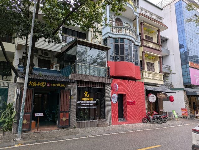 道路に面した建物は、細長い。先日のツアーガイドから、間口の広さで税金がかかるから、このような建物になっていると説明があった。