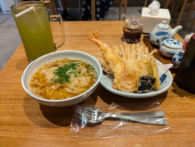 昼食、お寿司と天ぷらセット、美味しいに決まっている。