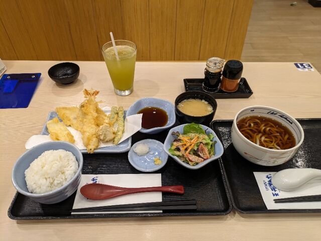 昼食、セントラルフェスティバルの天丼てんやの天ぷらセットと温うどん、1,600円。美味しゅうございます。チェンマイに来てから魚料理で美味しいのを食べていなかったので、特によろしいです。
